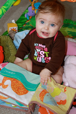 I rolled over five times today -- on purpose. I did it twice yesterday. This is new to me. I figured out that if someone puts me down on my stomach, which I really dislike, then I just throw my legs to the side and they pretty much take me the rest of the way. Genius!