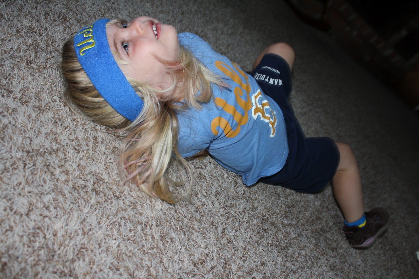 Ta-dah! I'm done. Now I can watch Woody and Buzz, and eat goldfish and raisins and a banana, and drink a nice, cold sippy-cup full of milk.