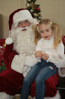 Yep, Santa's been making the rounds, promoting gift-getting and candy-eating. Ben didn't really care for this photo-op business, but I did OK. And I dropped off some canned goods for the local food bank.